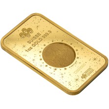 Descripción: Lingote en formato "Minted Bar" (troquelado/acuñado), sellado en blíster de plástico junto con su certificado con número de serie coincidente en ambos.