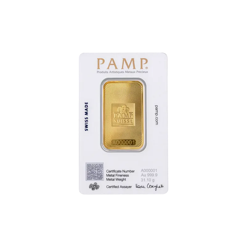 Descubra la belleza y el prestigio de PAMP Suisse con este lingote de oro de 1 onza. Producido por una refinería líder en la industria, usted tiene la total garantía de estar adquiriendo un producto de máxima calidad que contiene 1 oz de oro fino .9999. Cada pieza se presenta en un blíster de seguridad con código QR a prueba de manipulaciones que asegura que el producto llegue intacto y auténtico a sus manos.