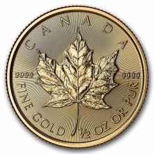 Edición de un media onza troy de la moneda bullion (lingote amonedado) oficial de Canadá. Fabricada por la Royal Canadian Mint, que cuenta con certificación Good Delivery, es de las monedas más populares a nivel mundial con más de 29 millones de onzas troy vendidas desde su introducción en 1979.
