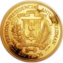 Moneda de Oro 250 Pesos-Rep. Dominicana-Visita S.S Juan Pablo II