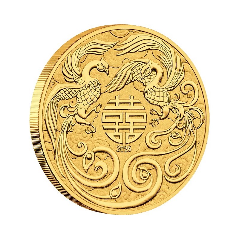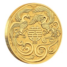 Exclusiva moneda acuñada en 1 onza troy de oro puro 99,99 %, que rinde homenaje al legendario Doble Fénix de la mitología china, símbolo tradicional de amor, armonía y prosperidad compartida.