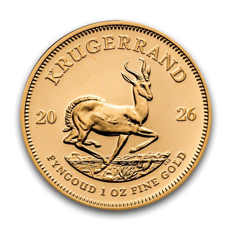 Edición de una onza de la moneda bullion (lingote amonedado) oficial de Sudáfrica acuñada por primera vez el 3 de julio de 1967. Pionera en el mercado de las monedas bullion se han acuñado más de 50 millones de Krugerrand en todos los tamaños desde el comienzo de su producción.
