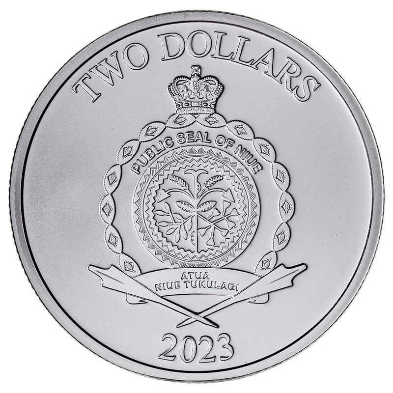 Moneda de Plata 2$ Dollar-Niue-1 Oz.-Roaring Lion-2023
