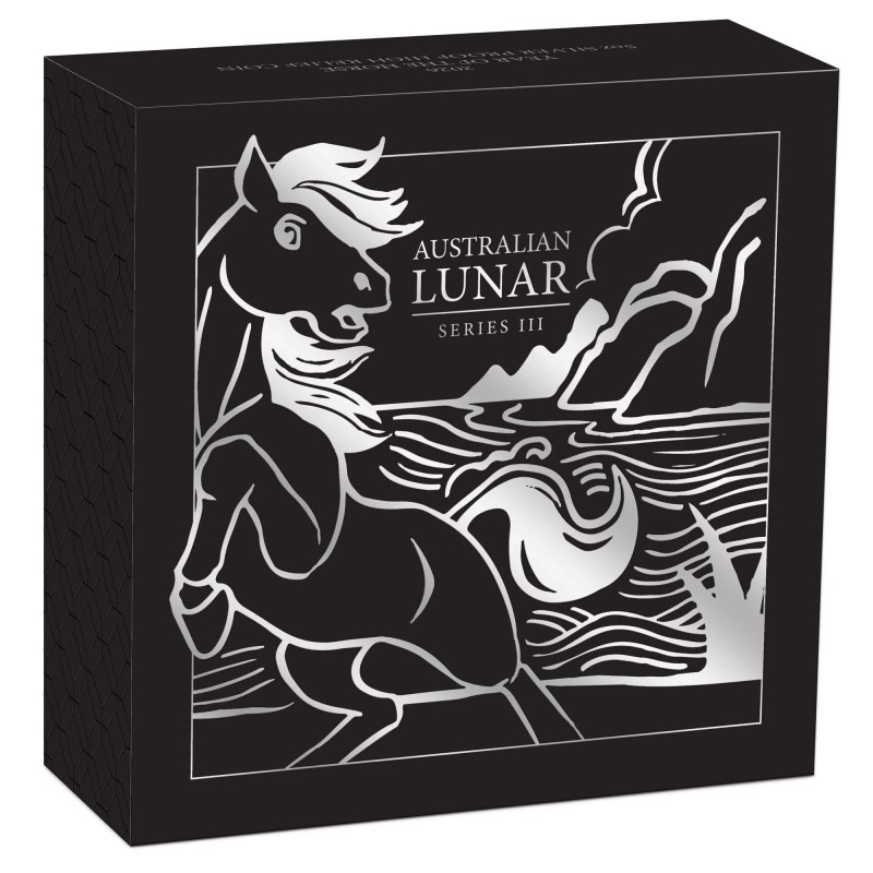 Moneda de Plata 8$ Dollars-Australia-5oz-Serie Lunar III-Horse High Relief-(Caja + COA)-2026