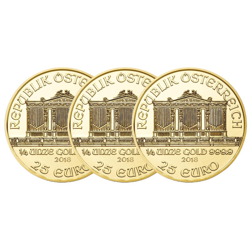 Edición de un cuarto de onza de oro de la moneda bullion (lingote amonedado) oficial de Austria. Emitida desde el año 1989 a la vez que el tamaño de una onza.