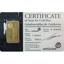 Lingote Oro 1 Onza Troy (31,10 gr) Refinerías Good Delivery Segunda Mano